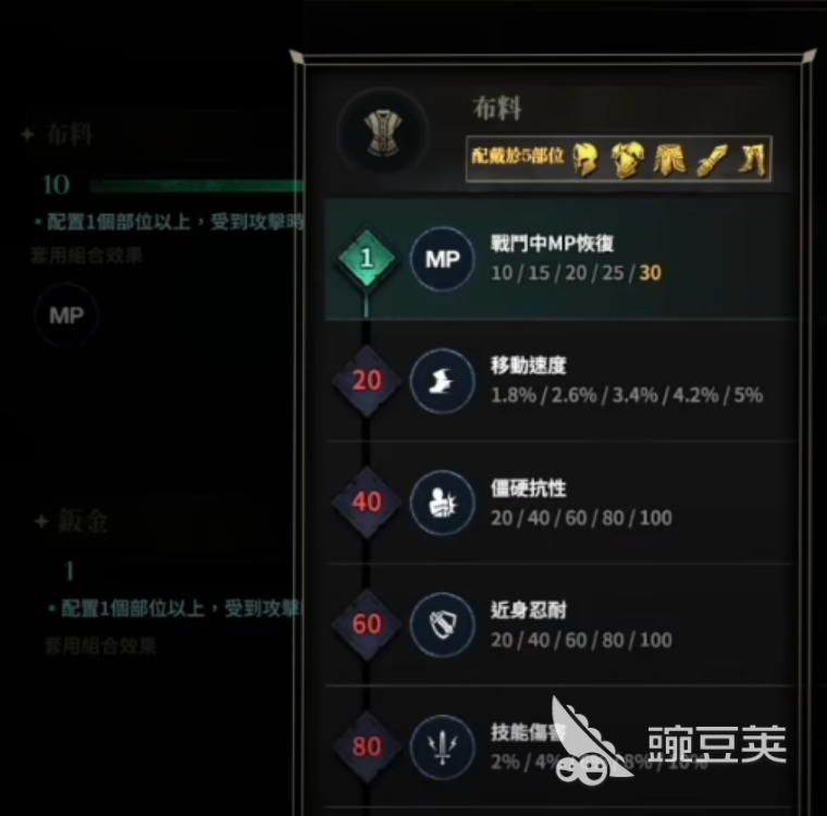 比如在布料防具系统在初级的时候,可能它不是特别的强,一旦级别升高之后,它能够更快地移动,效果慢慢的也会发生改变。当它升到40级时,它的僵硬抗性就会提升,当它升到100级时,它的魔法防御能力就会增加。
